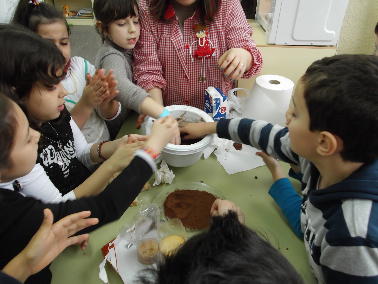 Hoxe preparamos unhas ricas trufas de chocolate, necesitamos chocolate para derretir, leite, galleta e chocolate en po. Derretimos o chocolate no microondas, mezclamos con leite e galleta e vamos formando bolas.Por último espolvoreamos con chocolate en po, e listos para disfrutar comendo todos xuntos. Mmm que rico!